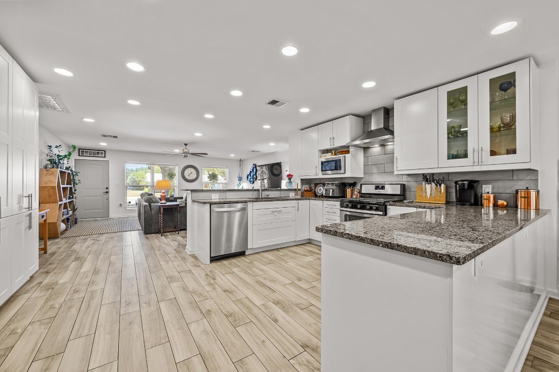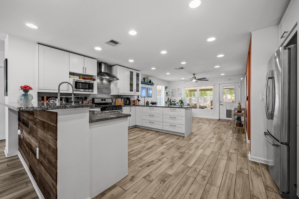 Welcome to 1900 Ohlen Road. Nestled in North Central Austin this home is light, bright, and beautifully renovated. This single-story 4-bedroom, 2-bath home in Austin’s beloved Wooten neighborhood delivers easy living and effortless entertaining. An open-concept layout welcomes you with abundant natural light, wide sightlines, and updated finishes throughout. The spacious living and dining areas flow into a stylish kitchen, perfect for everyday meals and weekend gatherings, and the split bedroom plan offers flexibility for a home office, guest room, or playroom.